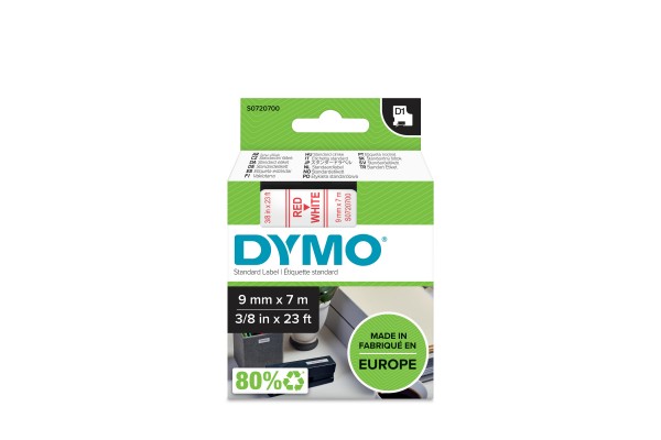 Ruban 9MM rouge sur blanc pour LP150/250-LM350/450/210D/220P