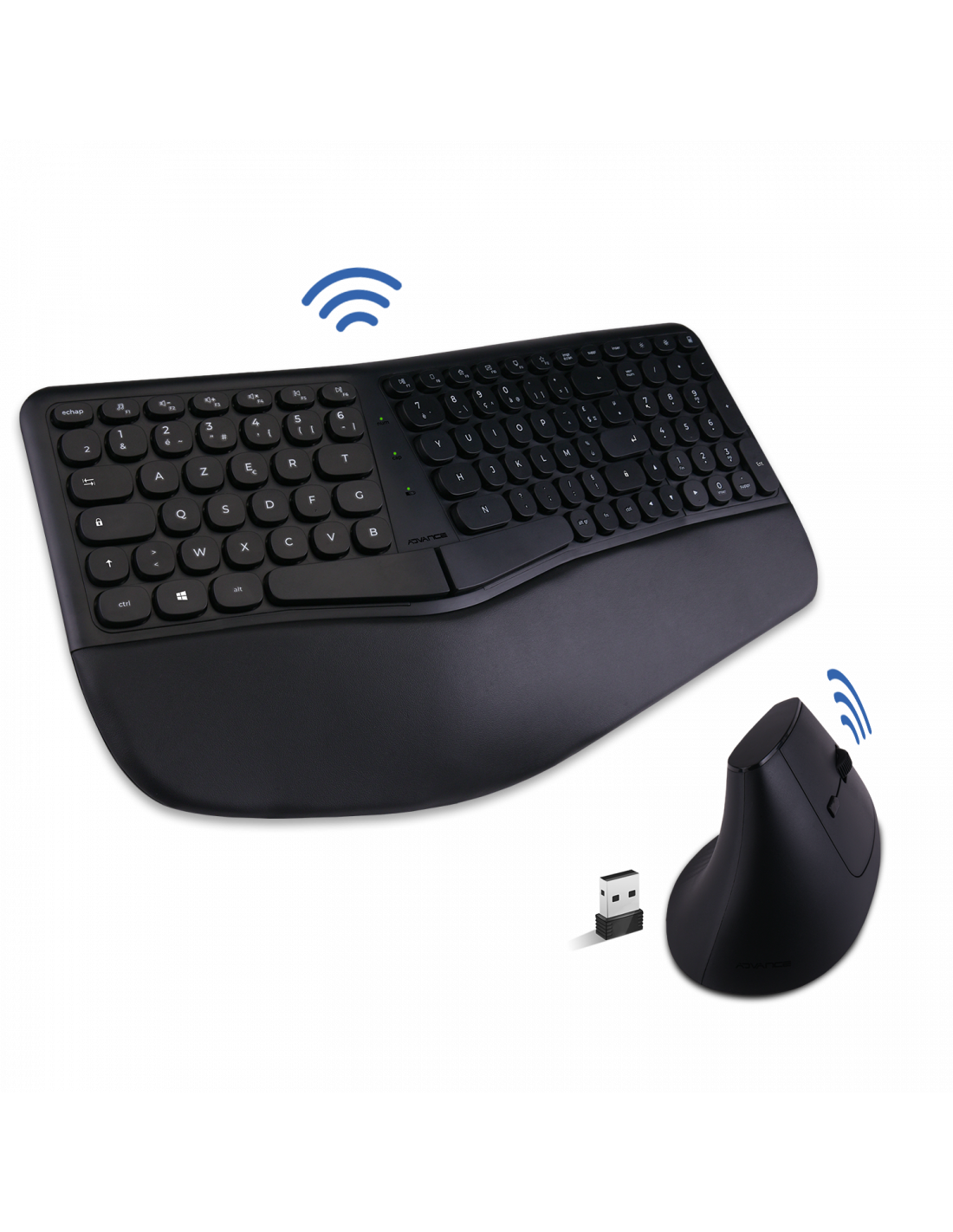Advance SmartErgo Wireless Ensemble clavier/souris ergonomique sans fil (RF 2.4 GHz) - 12 raccourcis multimédias - AZERTY, Français