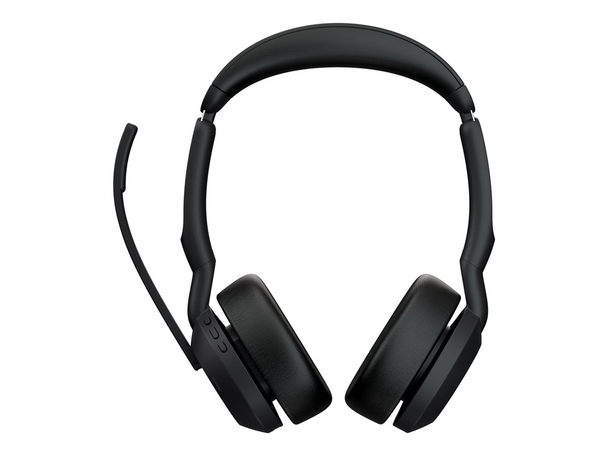 Jabra Evolve2 55 MS Stereo - Micro-casque - sur-oreille - Bluetooth - sans fil - Suppresseur de bruit actif - USB-A - noir - avec support de chargement - certifié Zoom, Cisco Webex Certified, Optimisé pour Microsoft Teams, Certifié Alcatel-Lucent, Certifi